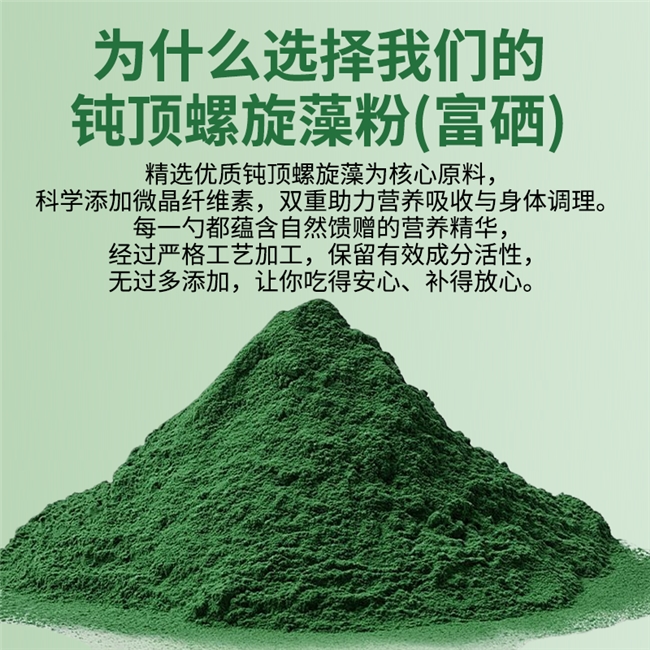成分配比精准贴合全天抗疲劳核心需求,每100克产品含蛋白质63.5克,可快速为机体补充优质植物蛋白,为能量的持续供给筑牢根基;硒元素含量高达5000微克,远超市场常规富硒螺旋藻产品,依托专利融合技术,硒元素吸收率攀升至92.3%,大幅超越普通富硒产品60%的平均水平,能高效清除体内自由基,舒缓细胞疲劳,实现精力的长效续航。同时,添加343毫克铁元素助力气血调和,改善贫血引发的乏力、头晕等症;1290毫克钾元素维系机体电解质平衡,搭配多种维生素强化代谢机能,更复配双歧杆菌等活性因子调节肠道菌群稳态,辅以16200微克β-胡萝卜素等抗氧化成分延缓细胞氧化衰老,多效协同构建全天候精力防护体系。