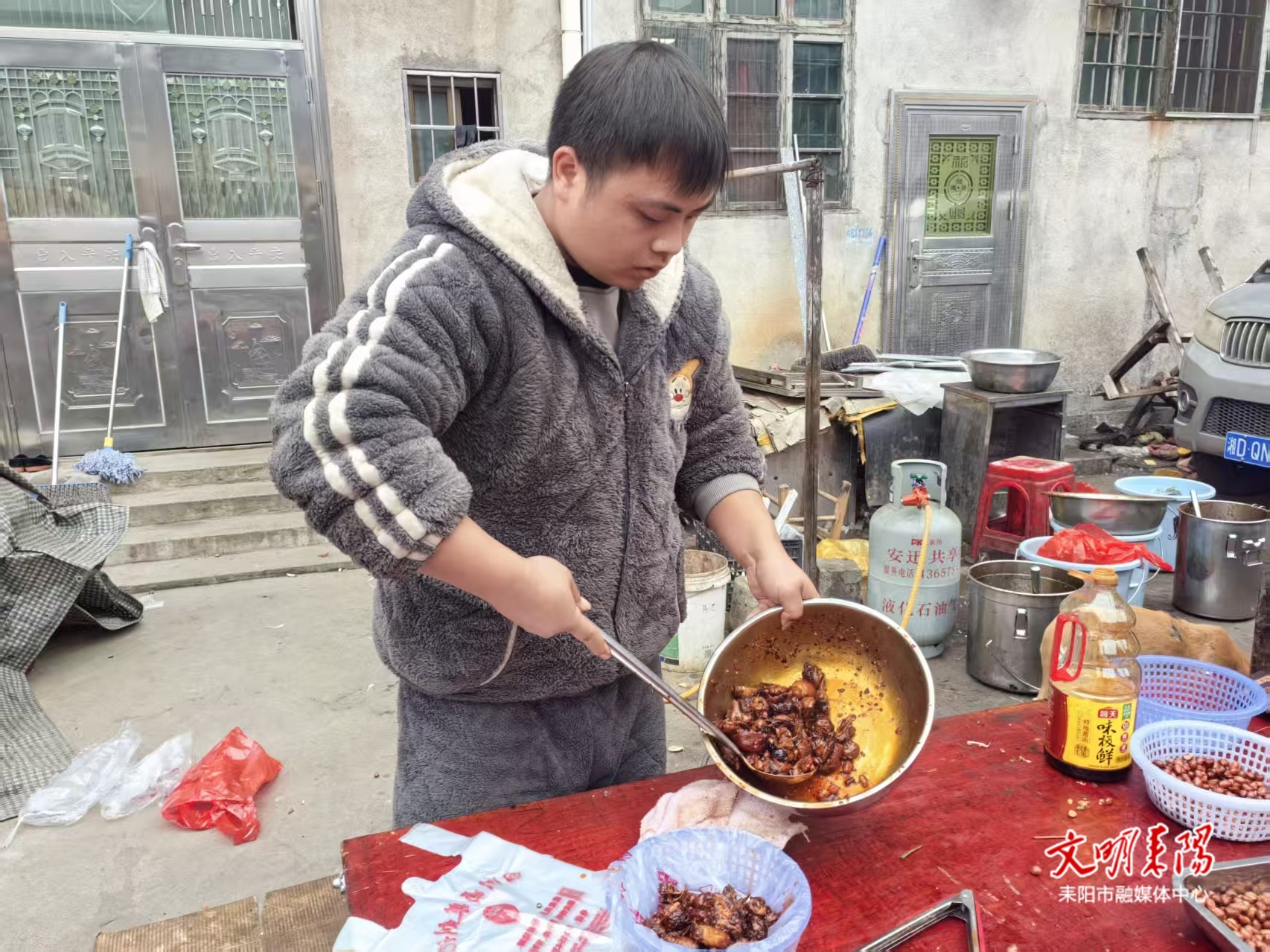 古老的圩场也敞怀迎纳着新时代的气息。年轻的“00后”摊主小刘正张罗着自家的卤味生意。“快过年了,生意也越来越好,怕父母忙不过来,特意回来帮帮忙。”他介绍道,还计划通过直播平台售卖产品。