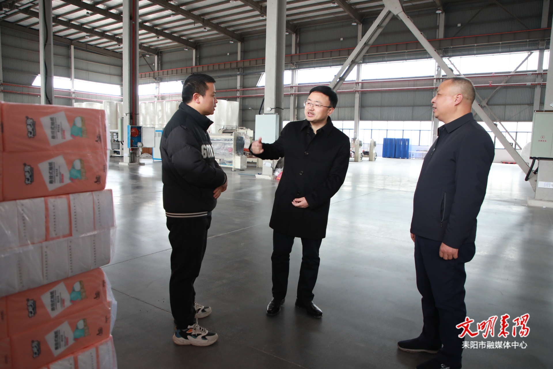 张润槐先后到帝融集团、益丰大和草鱼、玖伍杉贸易、华奕箱包、友洁纸业、旭璟科技等企业,实地察看项目建设进展,详细了解施工进度、要素保障、设备安装及配套设施建设等情况,并现场办公解决项目建设中存在的困难和问题。