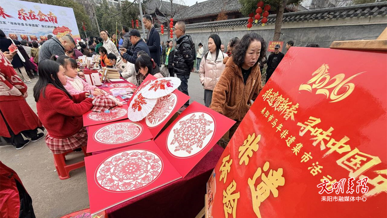 活动现场精心打造的非遗集市成为一大亮点。这里不仅汇聚了众多传统非遗项目展示与手工艺品,还设有当地特色小吃摊位,让居民在感受文化魅力的同时,也能品尝到熟悉的美味。版画拓印、活字印刷等传统非遗项目前围满了好奇的居民,大家纷纷上手体验,近距离感受古老技艺的独特魅力。竹编、剪纸等精美的手工艺品琳琅满目,引得众人纷纷驻足欣赏、拍照留念。与此同时,当地书法家们现场挥毫泼墨,免费为居民书写并赠送春联。一副副饱含新春祝福与美好愿景的春联,传递着浓浓的年味,让现场充满了温馨祥和的氛围。居民们扶老携幼,在各摊位前排起长队,现场气氛热烈非凡。金南社区居民谢佳慧高兴地说:“今天的村晚不仅文艺表演精彩,让人看得十分尽兴。而且还能体验到各种非遗文化,这让我们真切地感受到生活越来越好,越来越幸福了。书法家写的春联非常好,年味十足,回去我就贴在家门口!”
