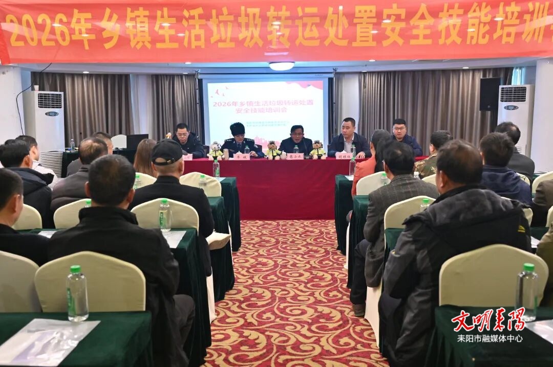 耒阳融媒2月6日讯(记者 江维东)为切实保障农村道路通行安全与垃圾清运工作有序开展,2月5日,市城管局固体废弃物处置事务中心联合市道安办、交警大队举办2026年乡镇生活垃圾转运处置安全技能培训会,来自各乡镇一线的作业人员及管理人员共50余人参加培训,以专业赋能筑牢民生服务安全基石。