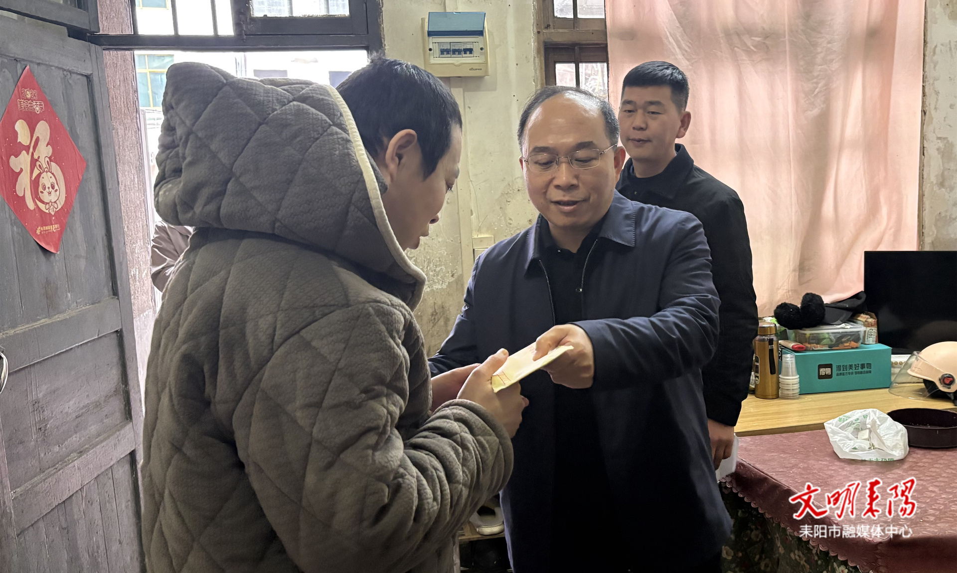 耒阳融媒2月6日讯(记者 贺智 刘源 钟菲 实习记者 欧阳资洁)春节临近,年味渐浓。连日来,耒阳市领导王星皓、张涛、谢东平、李连飞、刘廷斌、伍检告、刘丰等分别带领帮扶后盾单位走访慰问困难职工,为他们送去党和政府的关怀与温暖,并致以诚挚的新春祝福。