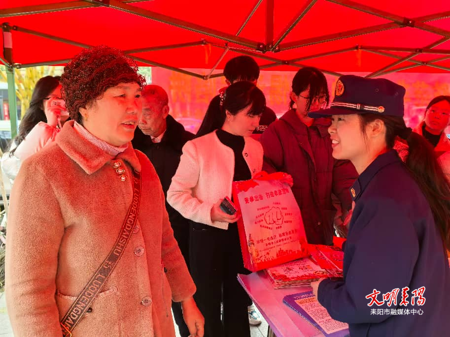 “爹爹(爷爷),您晓得麻个是‘高息理财’陷阱不?”“陌生链接莫要点,转账之前多核实!”活动现场,志愿者们操着地道的耒阳话,穿梭在市场的摊位间与人群中,将防范非法集资的宣传手册和印有安全标语的环保袋送到商户与居民手中。他们结合耒阳本地发生的真实案例,拆解“养老投资”“虚假年货团购”等骗局套路,用通俗易懂的语言提醒过往群众:“天上不会掉馅饼,所谓‘保本高息’都是圈套!”