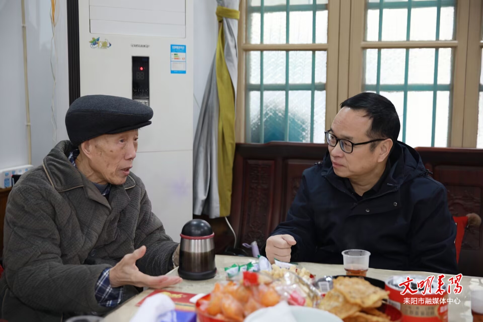 2月9日,在老干部家中,郭兴中与老干部史习俊、周厚国等促膝交谈、嘘寒问暖,详细询问他们的身体状况、生活起居和家庭情况,认真倾听心声诉求,细心叮嘱注意防寒保暖、保重身心。他向老干部通报了过去一年耒阳市经济社会发展与人大工作取得的成效,感谢他们长期以来为耒阳改革发展、民主法治建设和人大事业打下的坚实基础、作出的重要贡献。希望老干部们继续发挥经验优势、政治优势,多提宝贵意见,一如既往关心支持全市中心工作与人大事业发展,为耒阳高质量发展贡献智慧和力量。