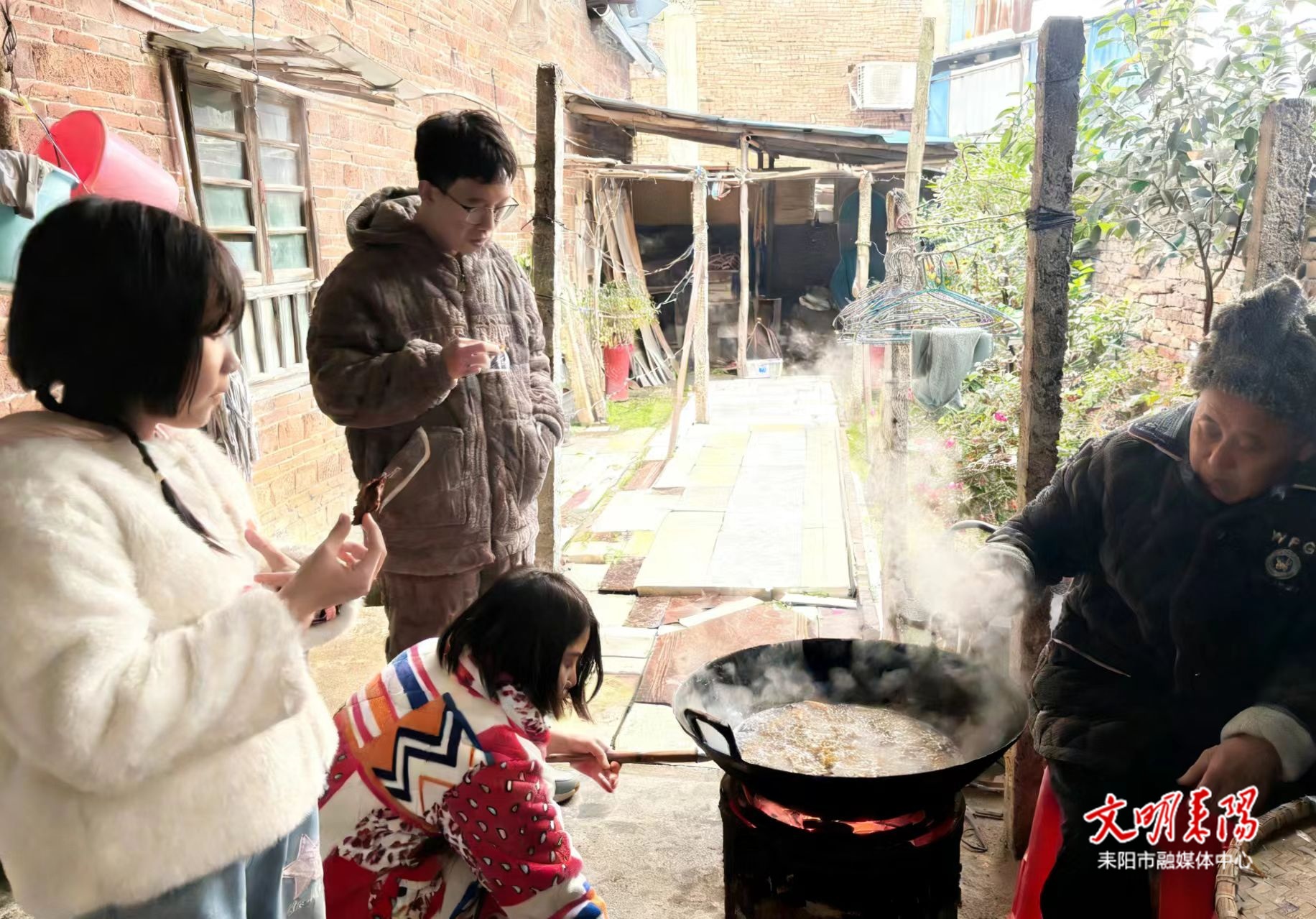 耒阳融媒2月13日讯(记者 刘晗 钟菲)腊月二十二,年意渐浓。在蔡子池街道金南村一处农家小院中,炉火正红、油香缭绕,梁大爷一家三代人正围着油锅有条不紊地忙碌着。红薯圆子、肉圆子、绿豆圆子相继滑入锅中,在滚油中渐渐染上诱人的金黄色,也“炸”出了满屋温馨的团圆光景。