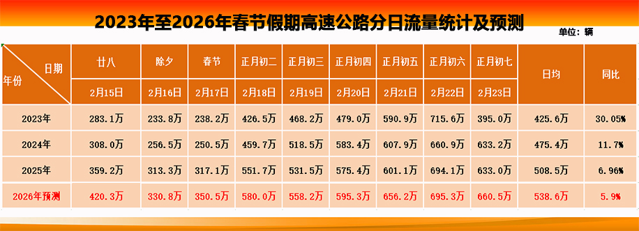 (一)2026年全省高速公路春节路网流量预测情况