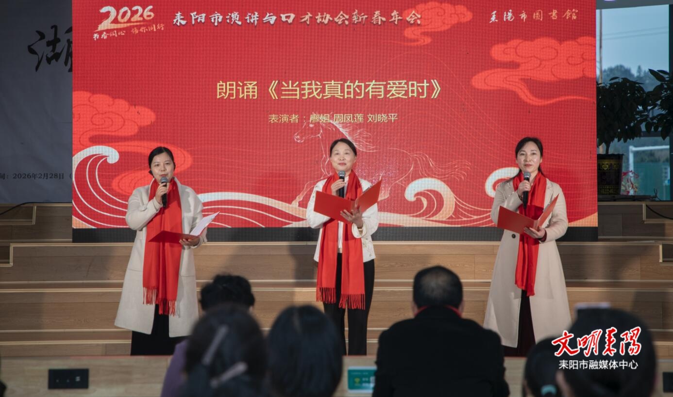 耒阳融媒3月2日讯(记者 梁梓坤)3月1日下午,由耒阳市图书馆、耒阳市演讲与口才协会联合举办的2026新春年会在耒阳市图书馆举行,吸引众多读者到场观看,书声朗朗、春意融融,一场充满书香气息的语言盛宴精彩呈现。市政协副主席、市文旅广体局局长陆小勇出席并致辞。