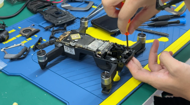 二、5 阶段分段教学(30–40 天) • 理论课:无人机原理、电路基础、故障诊断 • 电路与工具课:电子维修仪器、风枪烙铁、焊接实操 • 穿越机课:入门组装、调试、飞行 • 整机装调课:大疆主流机型(消费级 / 行业级)拆装、校准 • 维修课:主板、云台、电调、电池、图传等深度维修 三、实训条件 • 配备大疆全系真机(从小型到专业级) • 电子显微镜、专业维修台、测试设备齐全 • 人均实训设备价值约 1.1 万元 • 全程真机拆修实操