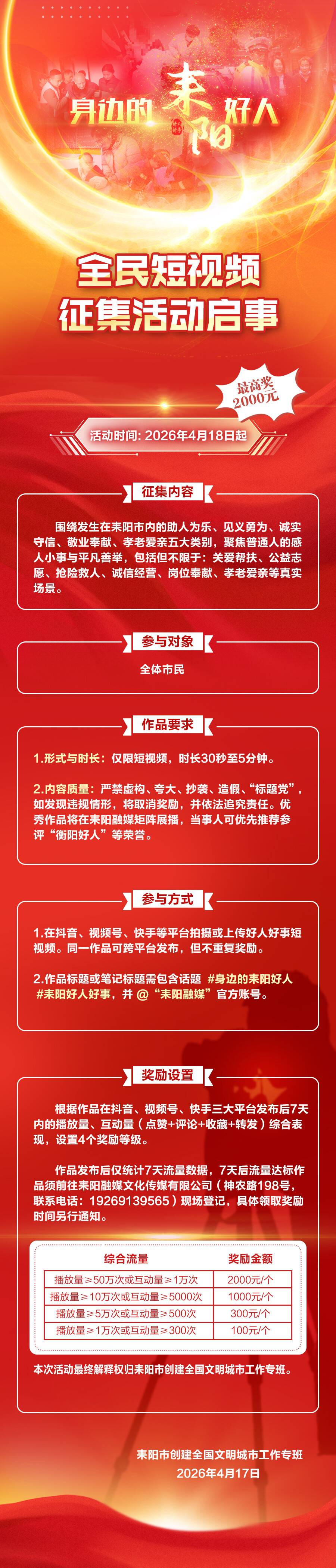 “身边的耒阳好人”全民短视频 征集活动启事