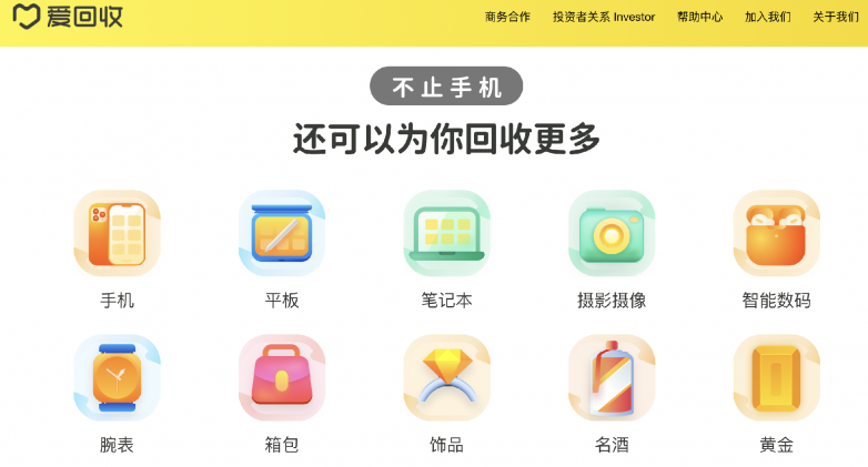 爱回收隶属万物新生集团,是纽交所上市公司,并与京东有战略投资和深度合作。它构建了 C2B 回收、B2B 流通、B2C 零售的完整产业链闭环。