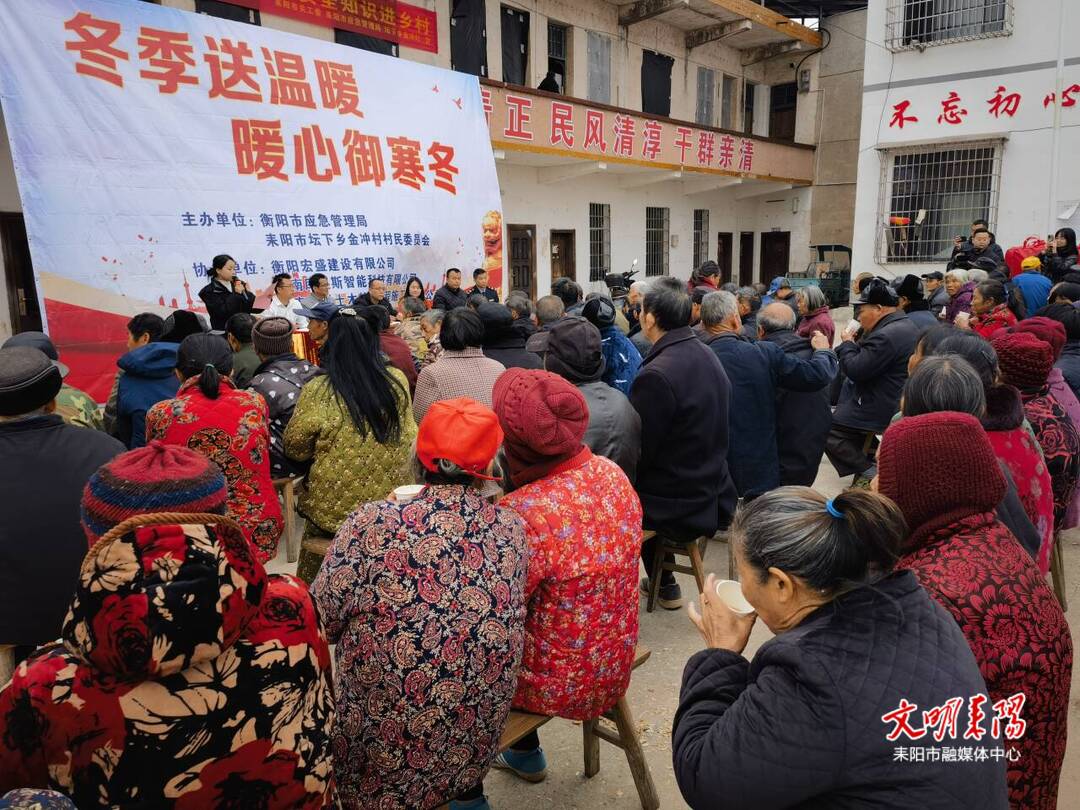 12月1日,衡阳市应急管理局、耒阳市坛下乡金冲村村支两委携手3家爱心企业,在金冲村开展“冬季送温暖,暖心御寒冬”活动,关心关爱留守老人和弱势群体。